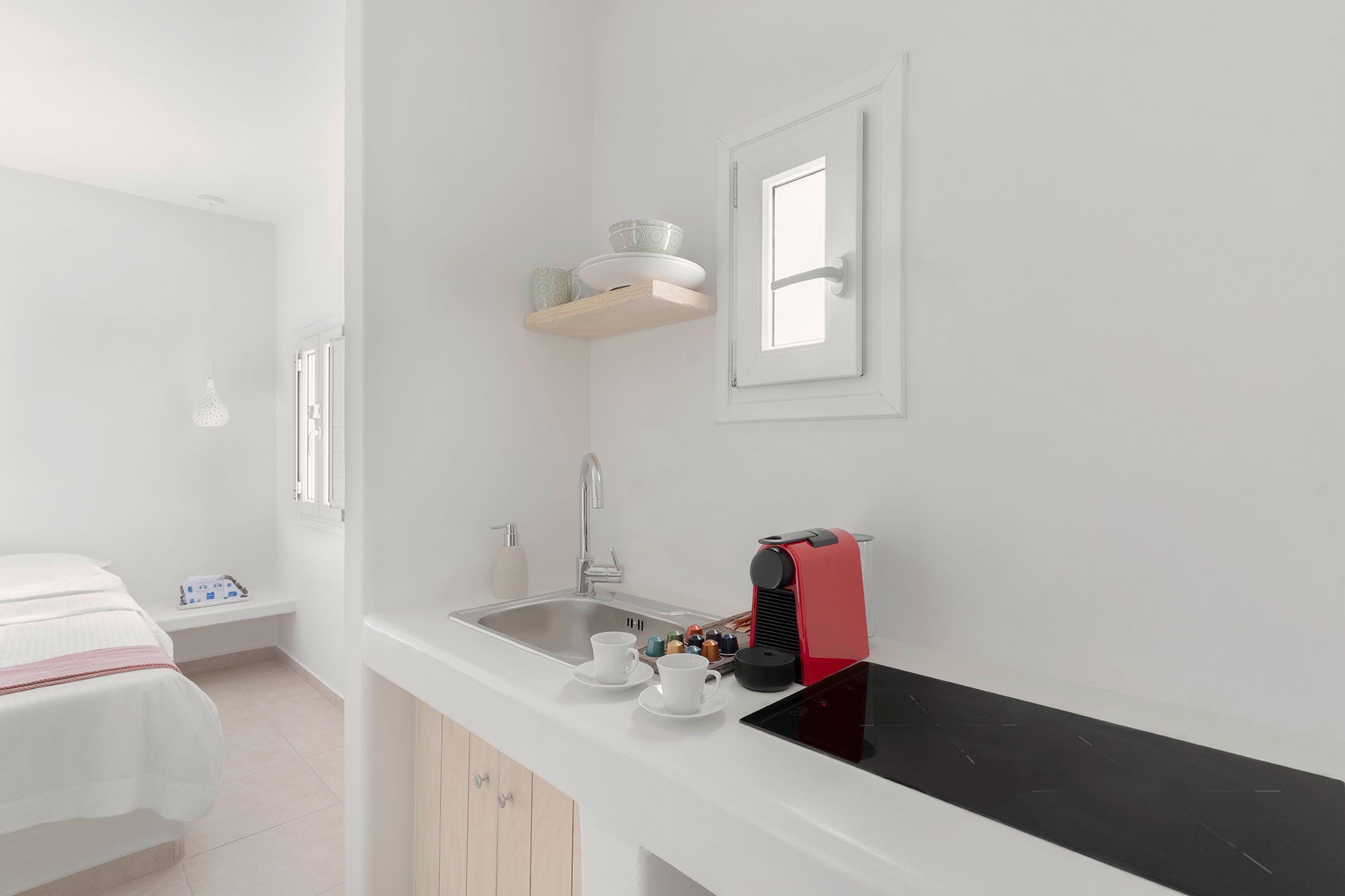 Ο μοντέρνος εσωτερικός χώρος, εξοπλισμένος με όλες τις ανέσεις, υπόσχεται μία απόλυτα ιδιωτική και χαλαρή διαμονή 2 ατόμων, καθώς βρίσκεται σε έναν παραδοσιακό οικισμό μακριά από την πολυάσχολη ζωή των Φηρών (πρωτεύουσα της Σαντορίνης).